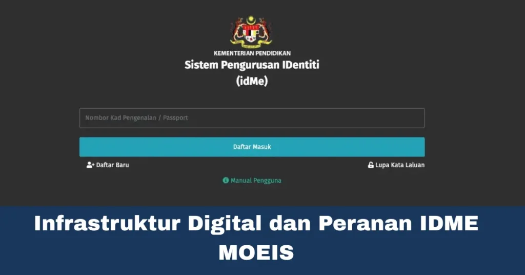 Pentadbir sekolah dapat mengurus kehadiran pelajar, penjadualan kelas, dan laporan prestasi secara lebih cepat menggunakan IDME, sementara MOEIS memastikan data rasmi dikemas kini dengan segera di peringkat KPM. Infrastruktur digital membolehkan IDME dan MOEIS berintegrasi melalui sistem Single Sign-On (SSO), memudahkan pengguna untuk log masuk sekali sahaja dan mengakses kedua-dua platform tanpa gangguan. Dengan sokongan infrastruktur digital, guru boleh menggunakan alat pembelajaran dalam talian, tugasan interaktif, dan kelas maya, sementara pelajar dapat mengikuti pengajaran dari jarak jauh tanpa menghadapi sekatan geografi.